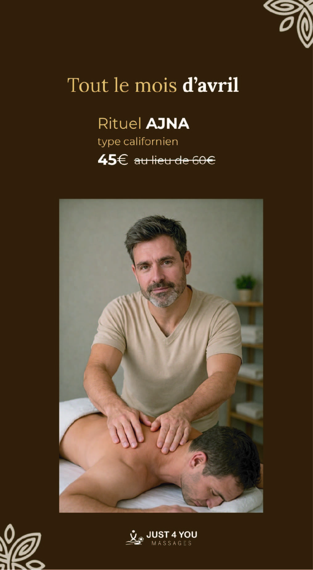 Suivez-moi pour ne rien manquer et bénéficiez de promotions uniques sur nos massages.